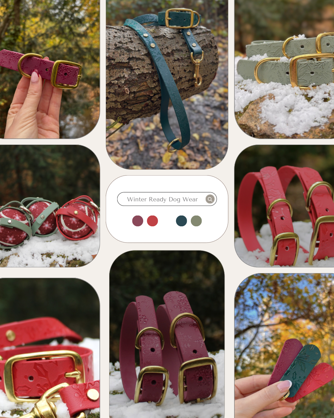 Choose your colour, print, hardware, size, width and personalise to build your perfect weatherproof dog wear.